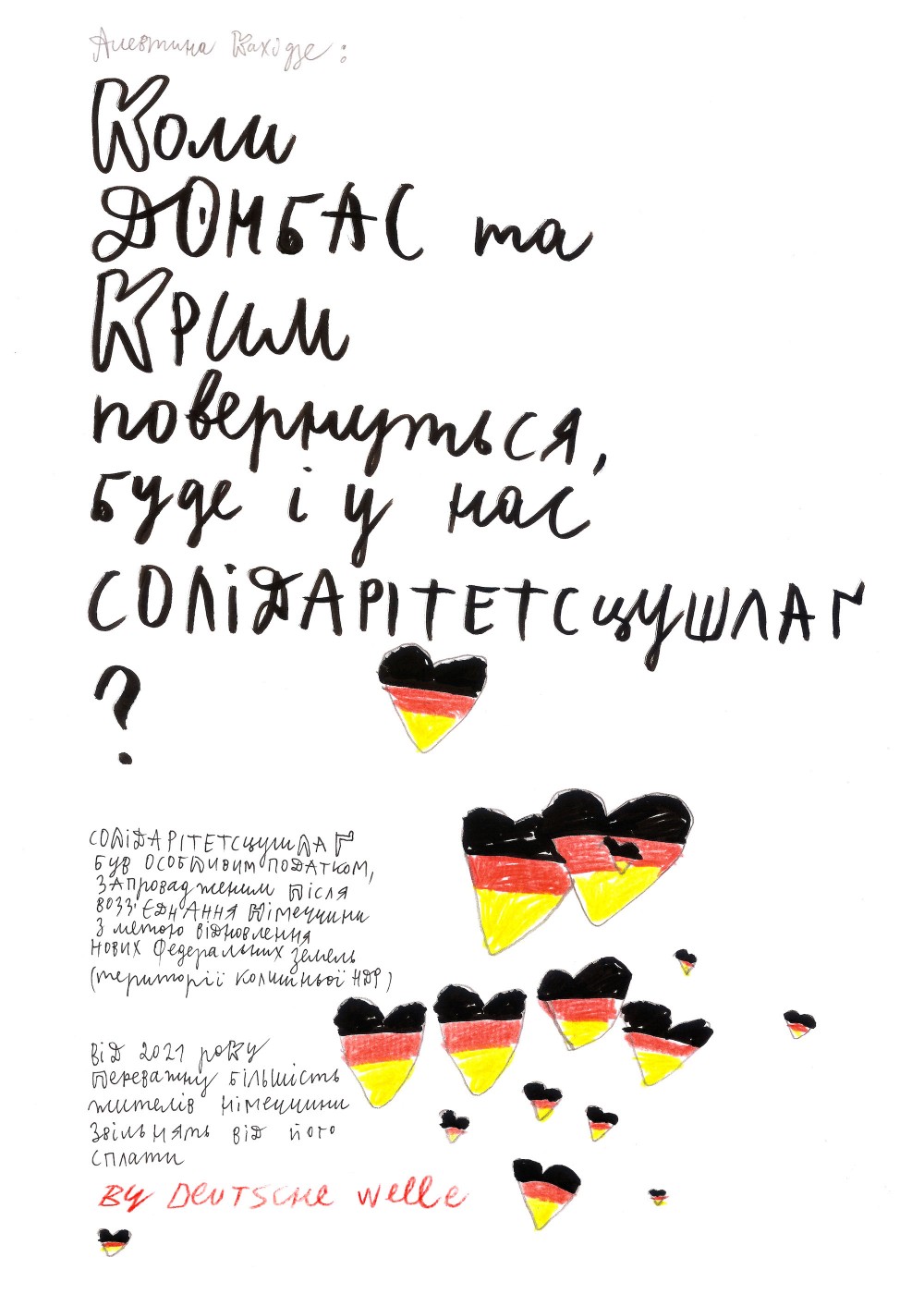 In this work, specially created for the #брюдершафт project, the artist considers possible scenarios for the reunification of the temporarily occupied territories with Ukraine and invites society to a discussion on the further actions they Ukrainian society is ready to make to do so.