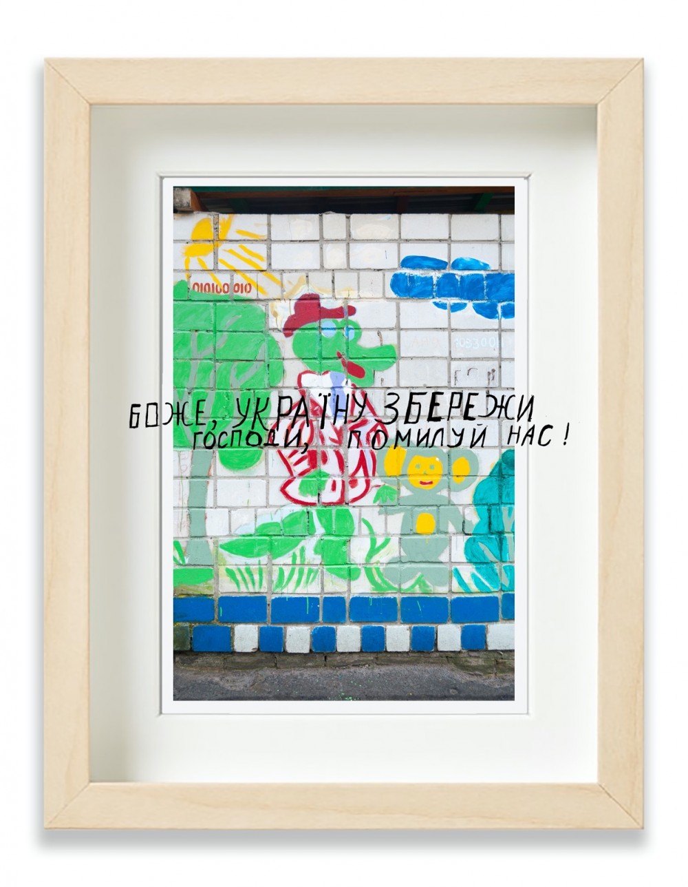 In his artistic practice, Poliakov focuses on spontaneous visual language and the traditions of the public spaces in Ukrainian villages and towns. The artist documents manifestations of naïve creative thought, that doesn’t belong to a particular author and ceases to have any particular meaning. These found objects are formed by the process of degradation, dismantling, mistakes, wild plants, random interaction between unrelated people, and their accidental needs. All signs and writings were captured without any intervention from the side of the photographer. However, the final prints were supplemented with his artistic vision. Separated from the mundane context and framed, these eloquent signs acquire the symbolic meaning of the historical artifact or an artwork.